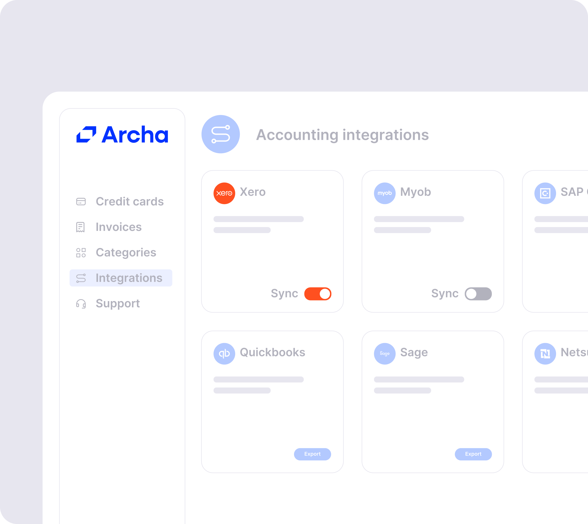 Collaborate with our team to put in place a robust connection into Archa’s cards engine. Whether you’re building a native integration into your dashboard or utilising our existing connectors, our technical team provides the white-glove support needed for a secure, "set-and-forget" sync.